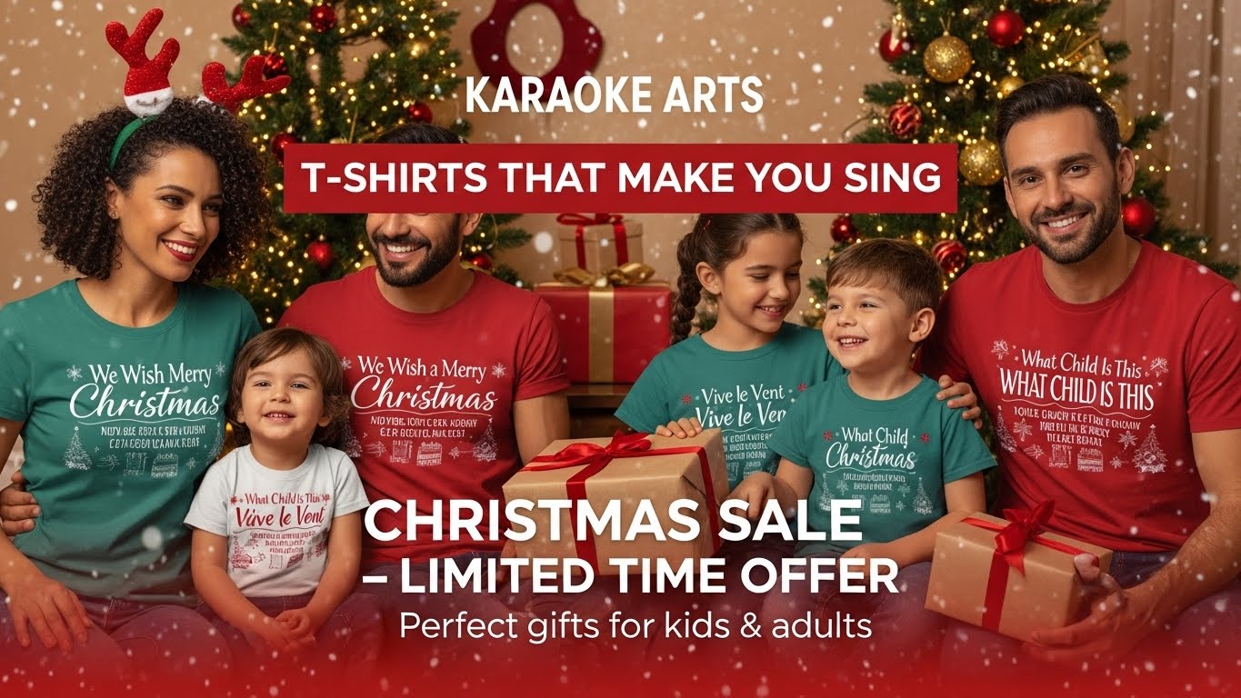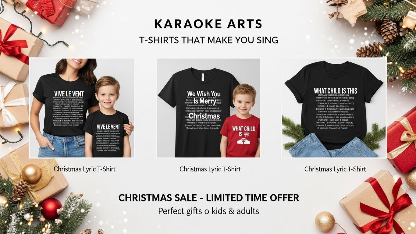 At KARAOKE ART, we are dedicated to bringing the joy of music and the magic of Christmas into every home. Our passion is creating high-quality, festive lyric T-shirts for kids and adults that combine style, comfort, and holiday cheer. From classic carols to beloved French and English Christmas songs, our mission is to make every family gathering, party, and holiday moment more memorable. With printed-on-demand care and attention to detail, we turn your favorite songs into wearable art that spreads joy, celebration, and the spirit of Christmas.